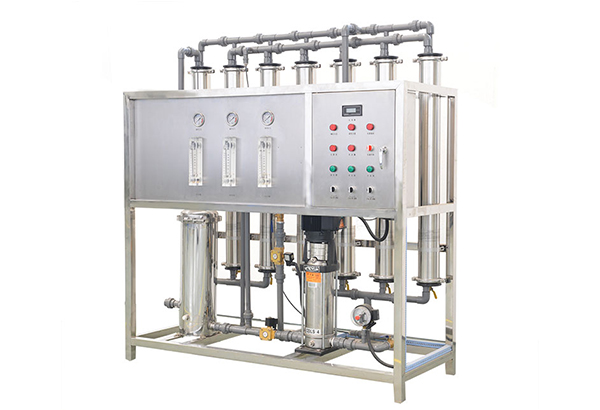 根據(jù)原水供水的水質(zhì)條件,結(jié)合用戶的用水水質(zhì)要求,由青州市科信水處理設(shè)備有限公司嚴(yán)格執(zhí)行我國家相關(guān)水處理的衛(wèi)生規(guī)范設(shè)計。純水系統(tǒng)采用以自來水或井水為水源,經(jīng)過前置預(yù)處理,加二級(RO)反滲透膜分離,得到電導(dǎo)率小于10的純凈水,純凈水處理設(shè)備處理后的出水水質(zhì)符合我國飲用純凈水水質(zhì)衛(wèi)生標(biāo)準(zhǔn)(GB17323、17324-1998),達(dá)到用戶的飲水需求。該純水系統(tǒng)設(shè)計進(jìn)水溫度2--50℃,系統(tǒng)脫鹽率99%。